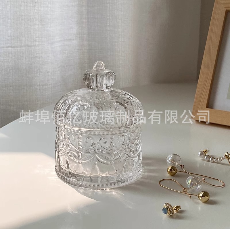 ins风皇冠浮雕玻璃首饰盒复古装饰摆件小精致饰品收纳盒diy蜡烛杯