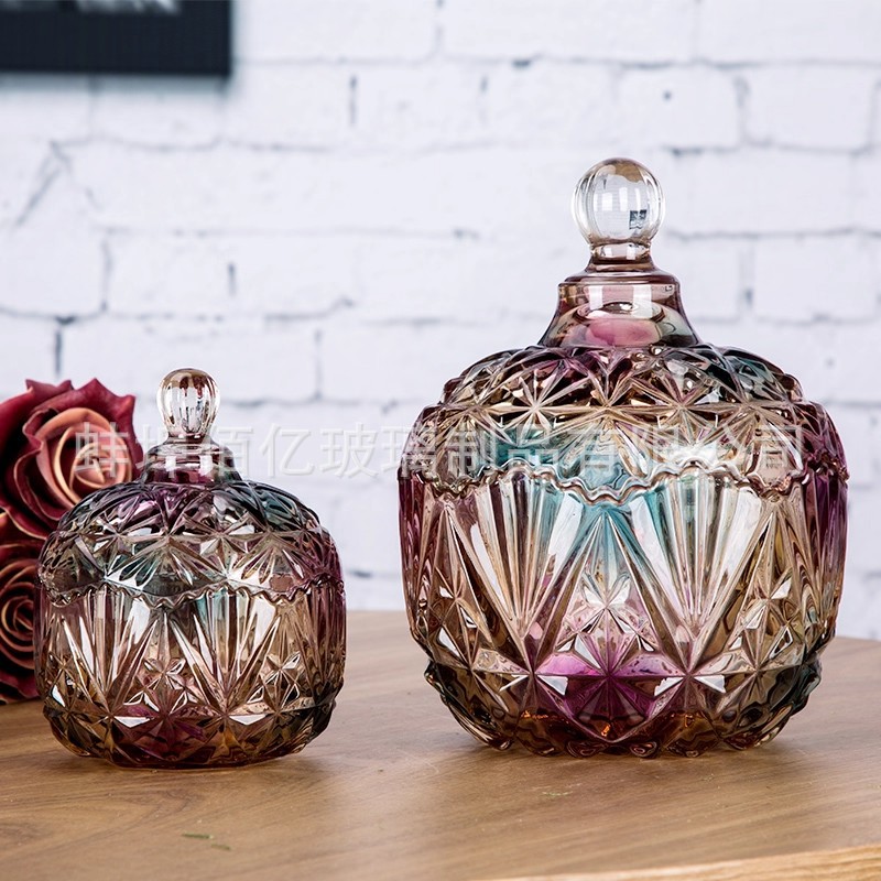 批发玻璃干果罐香薰蜡烛罐 玻璃罐糖果罐 收纳新年摆件礼品盒水晶