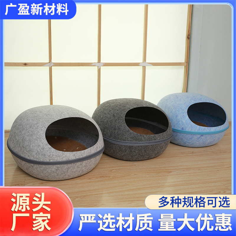 新款可拆洗半封闭毛毡猫窝加厚毛毡猫窝防抓透四季通用猫咪