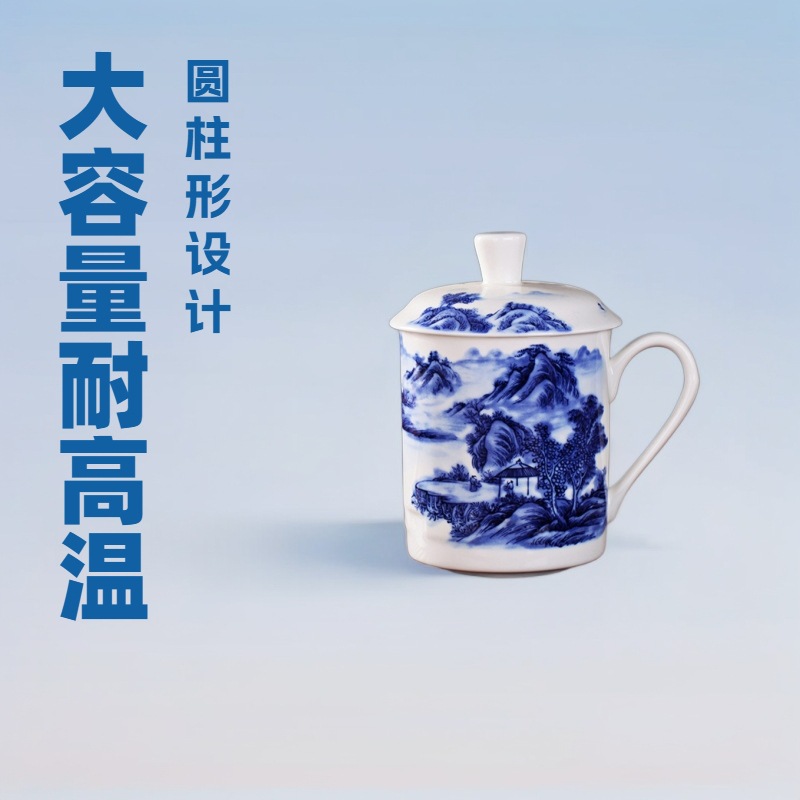 景德镇骨瓷茶杯陶瓷办公杯子带盖家用水杯大容量马克杯泡茶会议杯