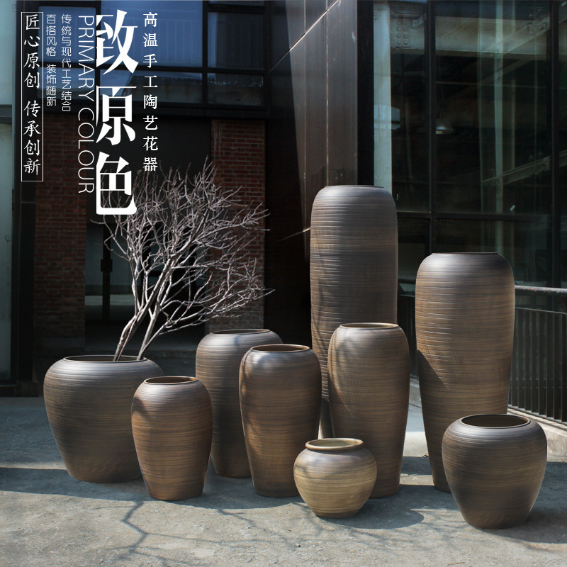 日式落地陶罐餐厅摆件手工文艺花瓶水培插花器工艺品摆设软装视品