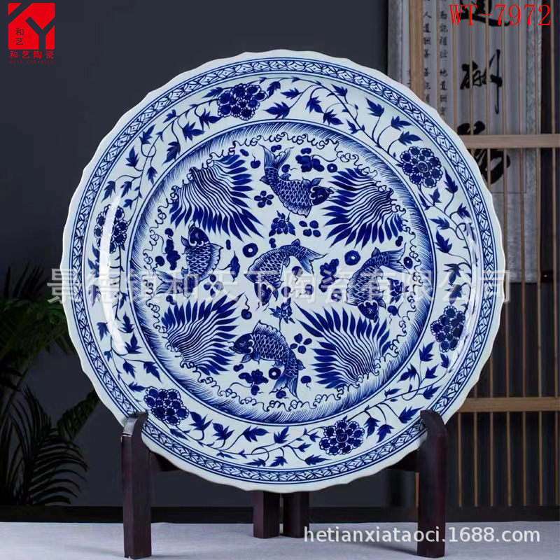 青花陶瓷海鲜大盘子1m一米60公分80厘米超大菜盆特大号圆菜盘
