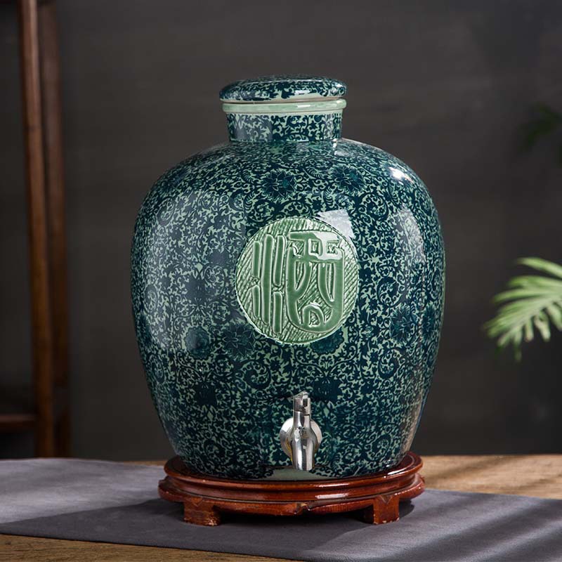 景德镇陶瓷泡酒坛子酿酒缸10/20/50斤仿手绘莲年有余酒瓶密封酒罐