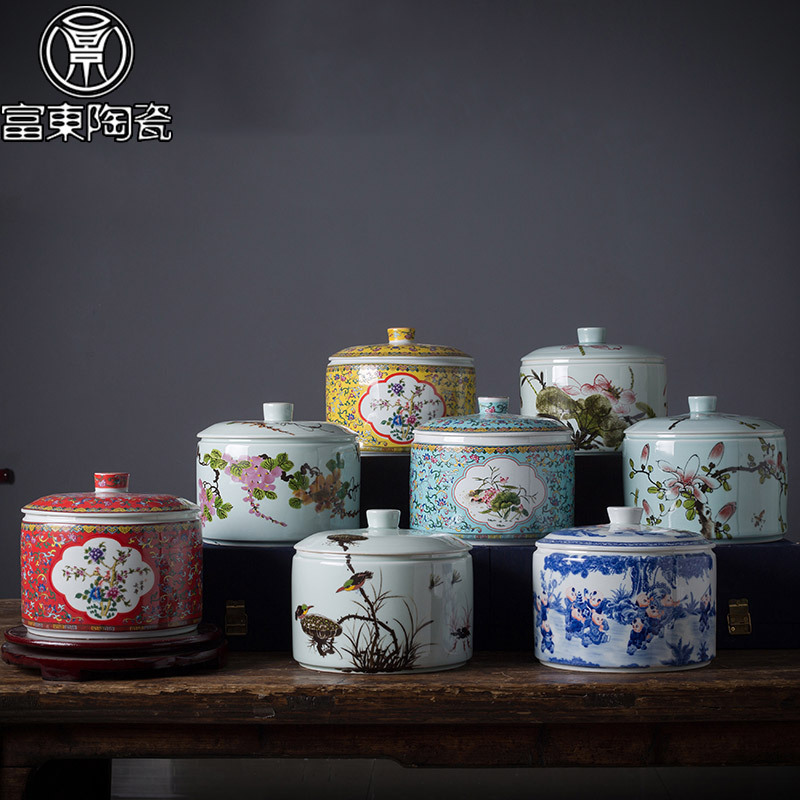 景德镇陶瓷米缸茶叶密封罐防潮大号零食罐带盖家用高温瓷储物摆件