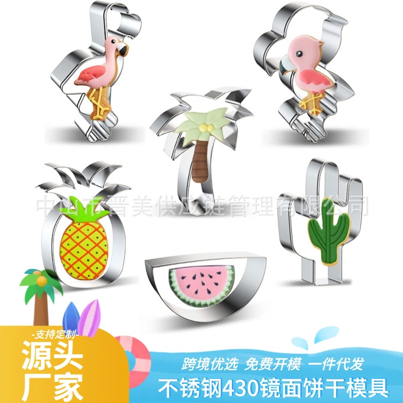 6件套火烈鸟不锈钢饼干模具夏日椰树西瓜曲奇蛋糕模烘焙工具跨境