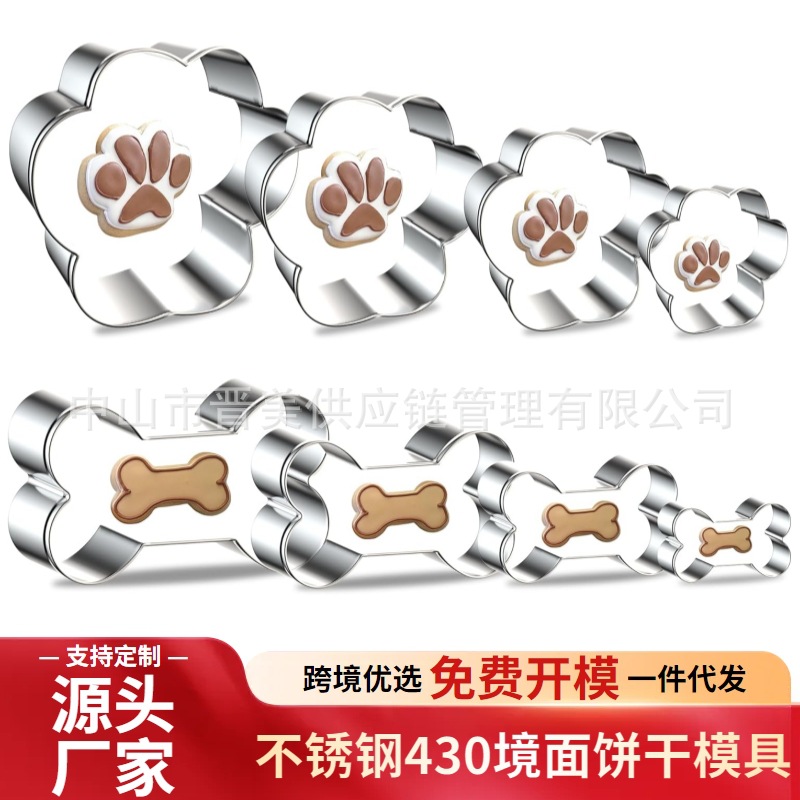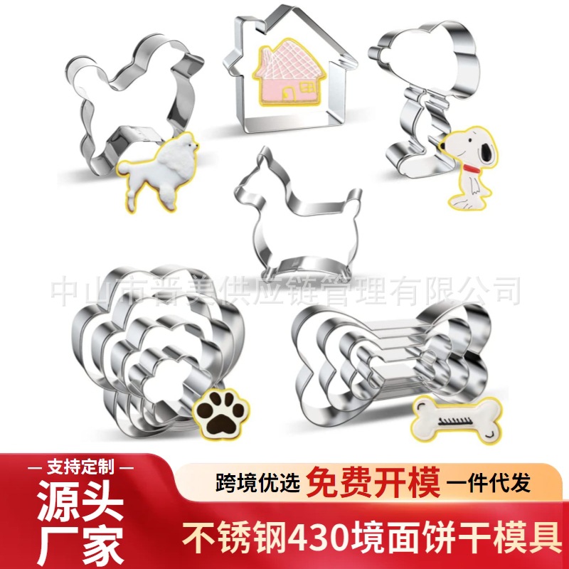 8件套狗爪骨头造型不锈钢饼干模具狗屋腊肠狗按压式蛋糕工具跨境