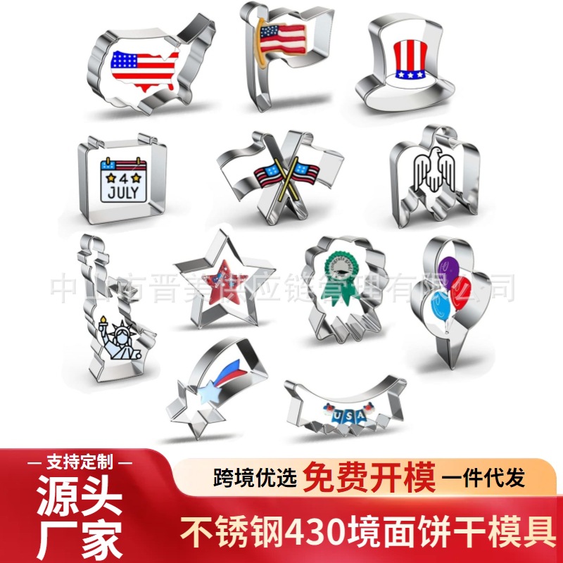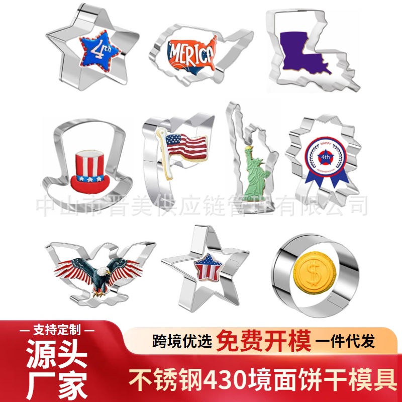 7月4日独立日不锈钢饼干模具国旗地图老鹰女神按压式烘焙工具跨境