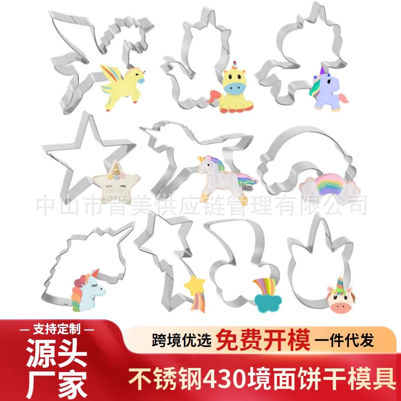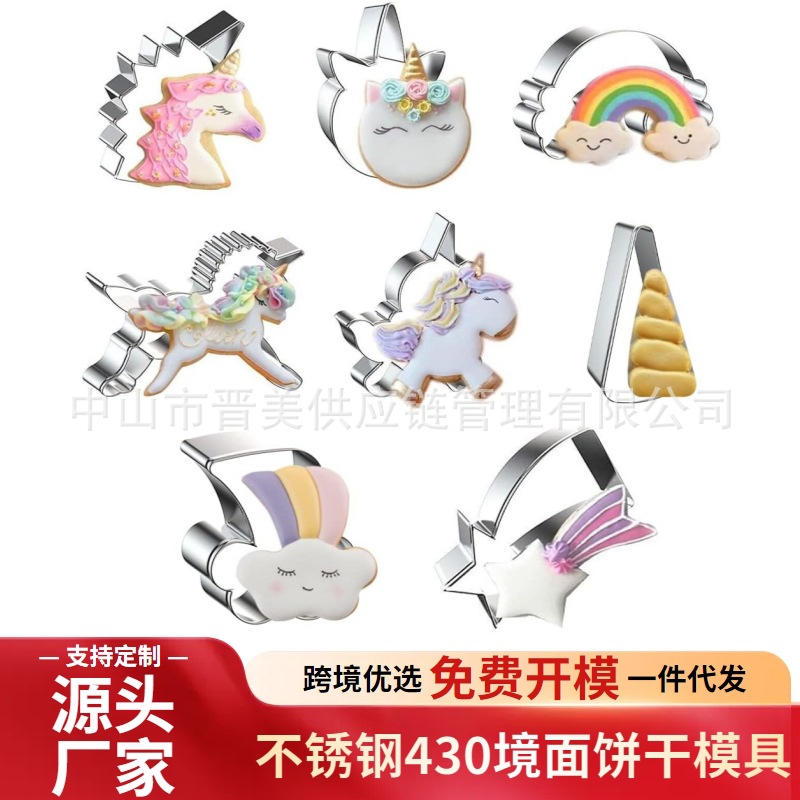 独角兽系列饼干模具彩虹流星套装按压式不锈钢糖霜烘焙工具跨境