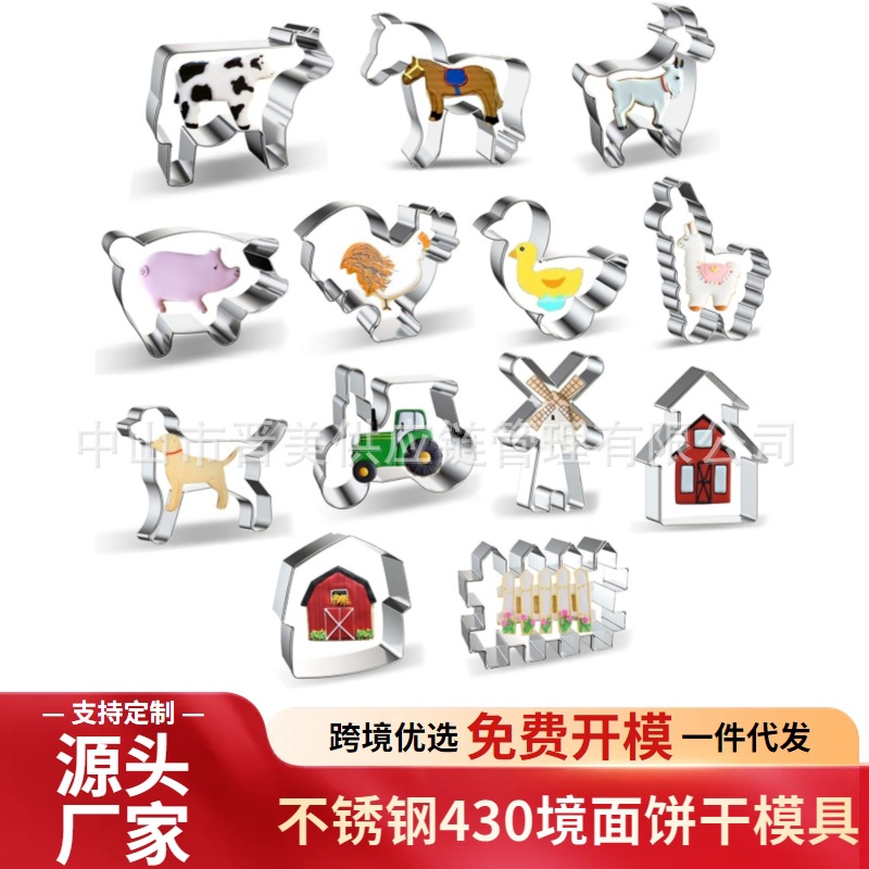 10件农场套装饼干模具动物奶牛公牛头不锈钢糖霜曲奇烘焙工具跨境