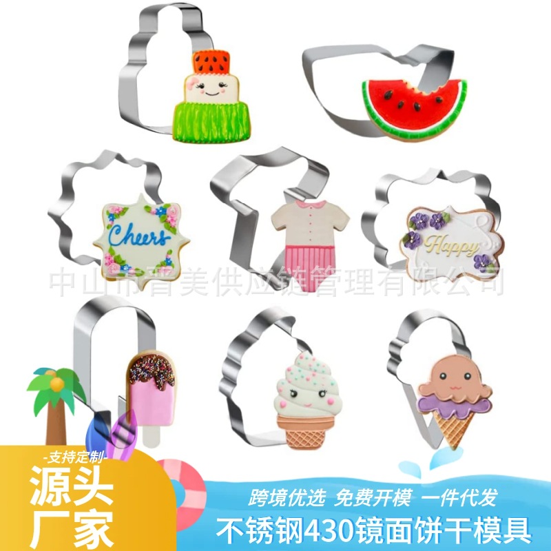 8件套夏天雪糕不锈钢饼干模具海滩冰激凌翻糖曲奇烘焙工具diy跨境