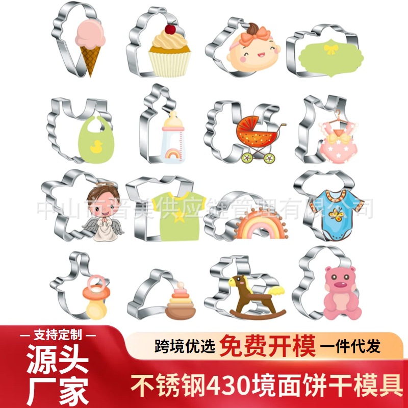 婴儿用品造型饼干模具儿童生日派对翻糖按压式不锈钢烘焙工具跨境