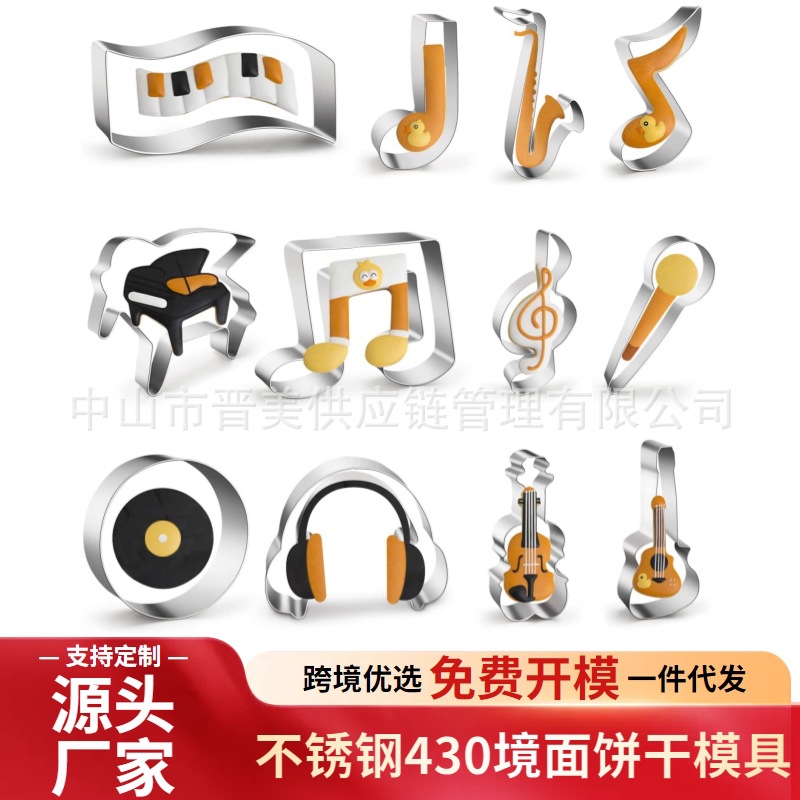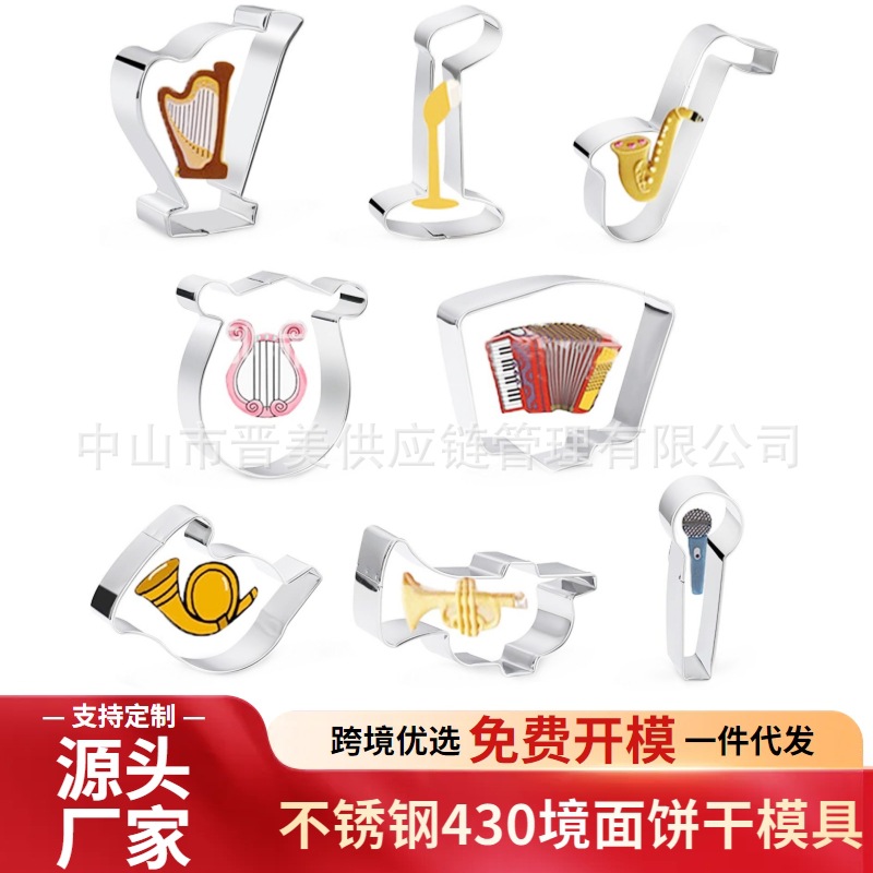 8件套音乐符号不锈钢饼干模具竖琴风琴麦克风翻糖蛋糕工具DIY跨境