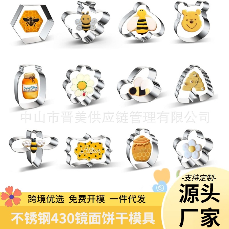 12件套装蜜蜂饼干模具维尼熊蜜糖罐按压式不锈钢糖霜烘焙工具跨境