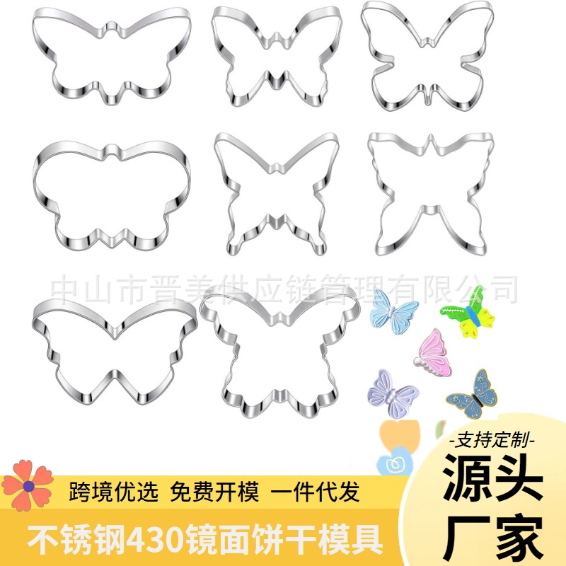 8件套装蝴蝶饼干模具定制按压式不锈钢春天昆虫糖霜蛋糕工具跨境