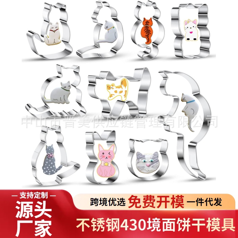 动物小猫饼干模具猫和老鼠造型可爱猫咪不锈钢按压式烘焙工具跨境
