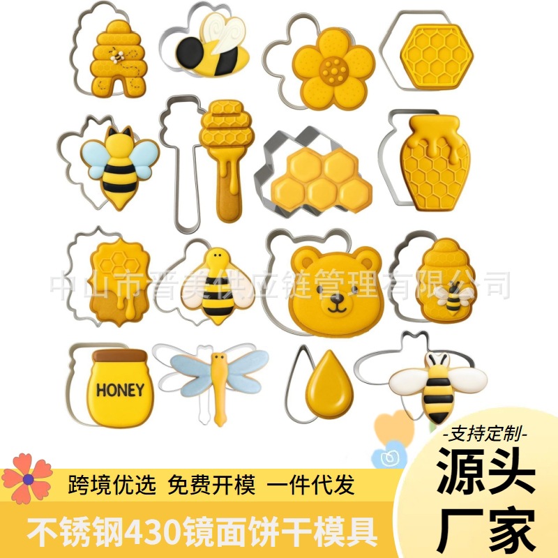 蜜蜂饼干模具定制按压式不锈钢春天蜜罐小熊蜂蜜糖霜蛋糕工具跨境
