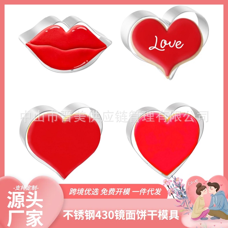4件套心形饼干模具情人节爱心糖霜曲奇切模不锈钢蛋糕工具diy跨境