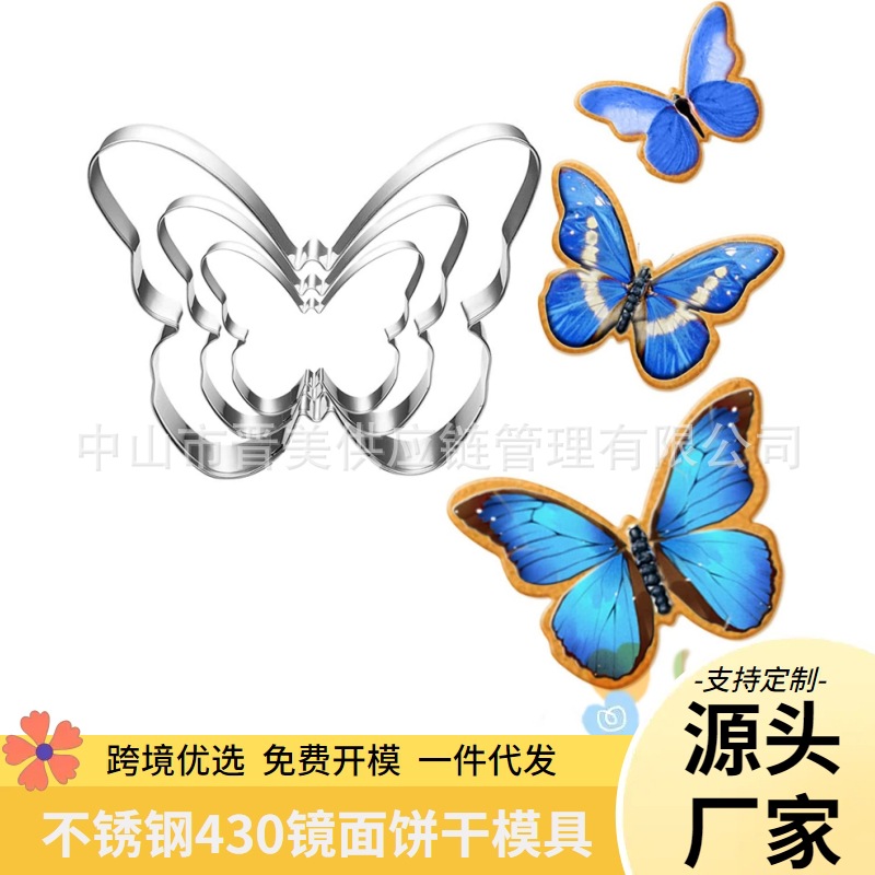 3件套装蝴蝶饼干模具按压式不锈钢春季复活节糖霜蛋糕工具diy跨境
