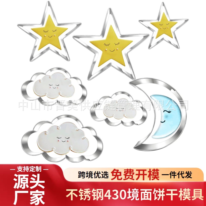 7件云朵套装不锈钢饼干模具星星月亮糖霜一体按压式烘焙工具跨境
