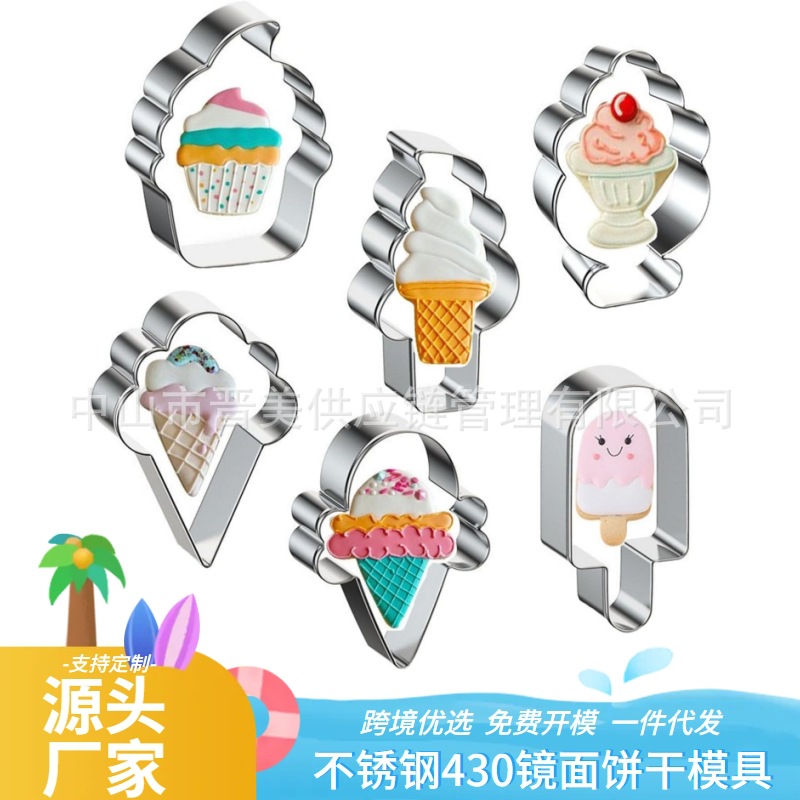 6件套冰激凌不锈钢饼干模具海滩雪糕冰棍蛋糕切模烘焙工具diy跨境