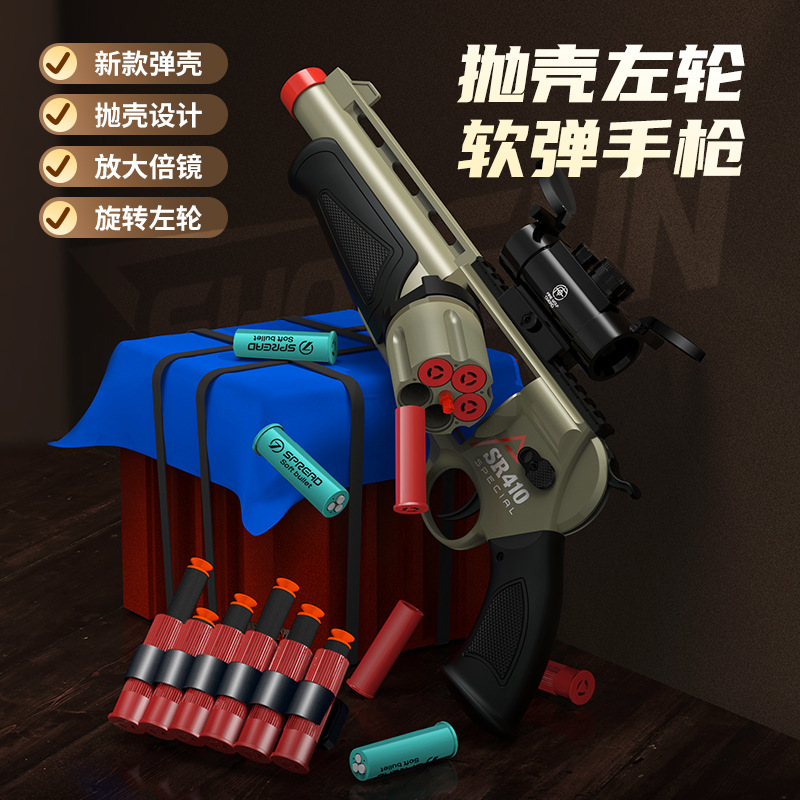 儿童抛壳左轮软弹枪旋转弹仓可发射玩具枪男孩手枪模型ZP5砸响炮