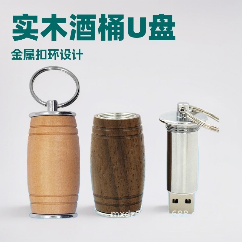 复古木酒桶闪存盘 酒吧主题U盘 金属扣环设计 开业庆典促销礼品