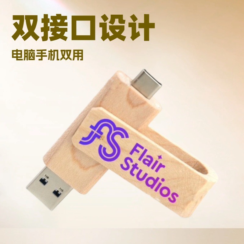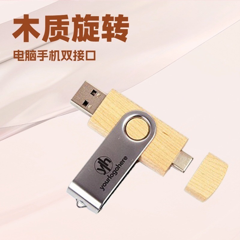 旋转环保木质手机优盘 二合一双头手机U盘 支持定制Logo