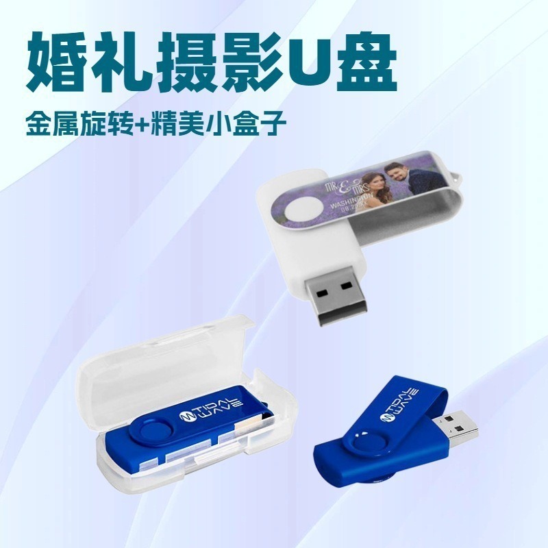 婚礼摄影旋转夹子优盘 精美小PP盒包装 广告礼品促销U盘
