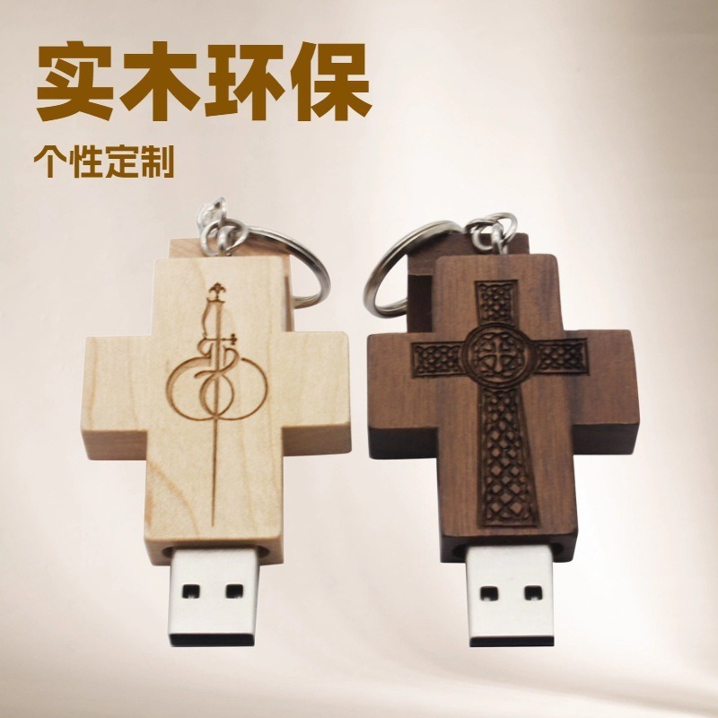 环保木质十字架优盘 宗教礼品/企业赠品 定制Logo