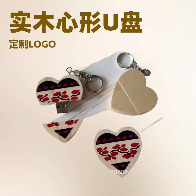 创意实木爱心形U盘 婚礼摄影主题优盘 Wedding Photography USB