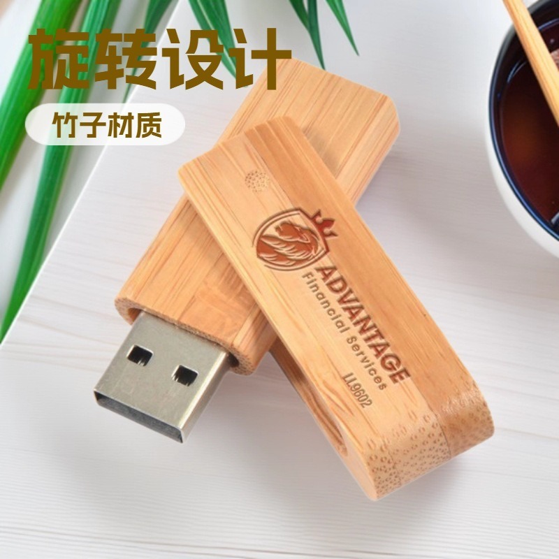 环保旋转木质竹子U盘 企业年会礼品优盘 支持OEM Logo定制