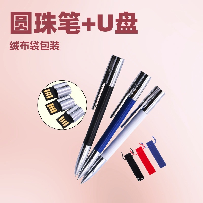 圆珠笔优盘 企业礼品U盘 精美绒布袋包装Promotion Pen USB Drive