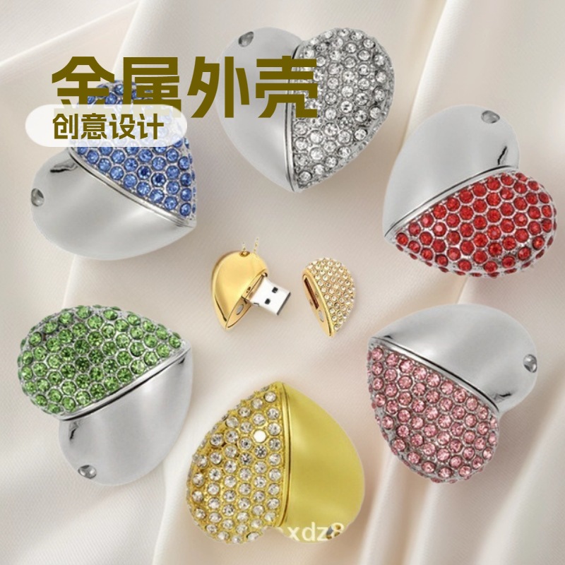 珠宝U盘 金属心形优盘 婚礼摄影礼品促销闪存盘 定制LOGO
