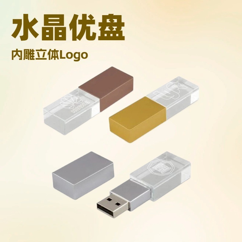 高透光创意水晶U盘 内雕立体定制LOGO 高亮彩色LED 企业促销品