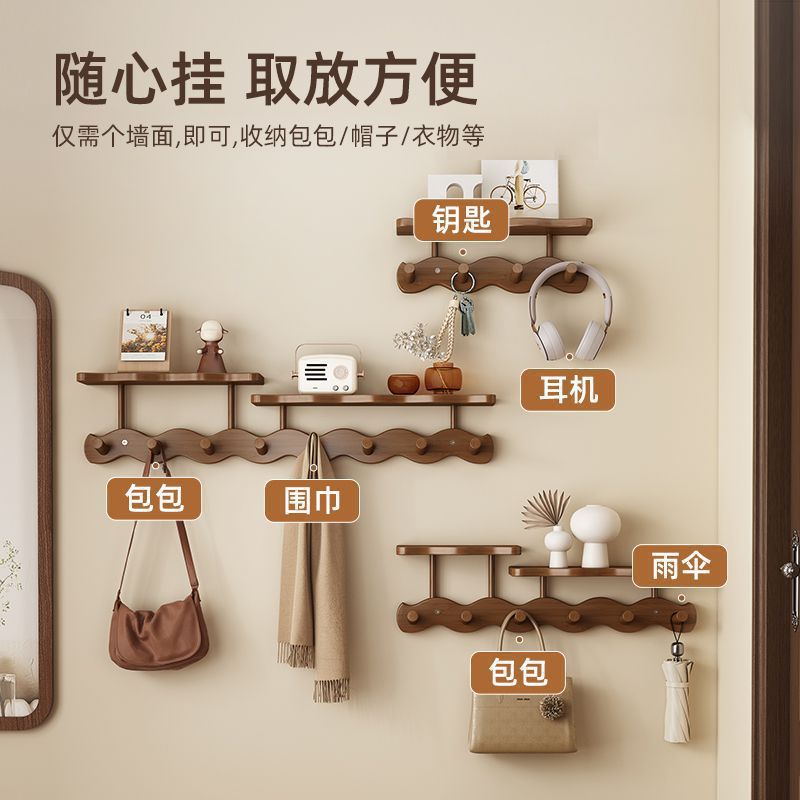 玄关波浪挂衣架墙上壁挂免打孔卧室门后钥匙收纳创意挂钩竹藤轻奢