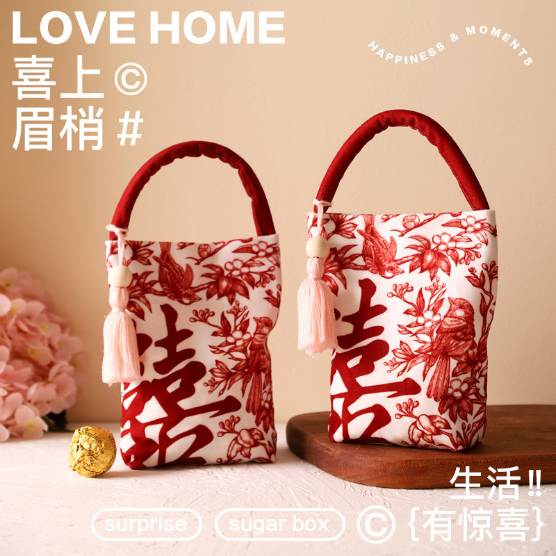 伴手礼糖袋礼品袋袋子结婚喜糖盒手提袋回礼实用外出婚礼喜字国风