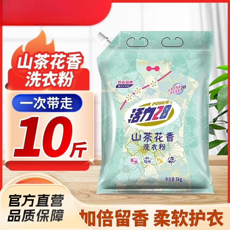 活力28 山茶花洗衣粉5kg袋装去污留香花香家用家庭装强效持久新款