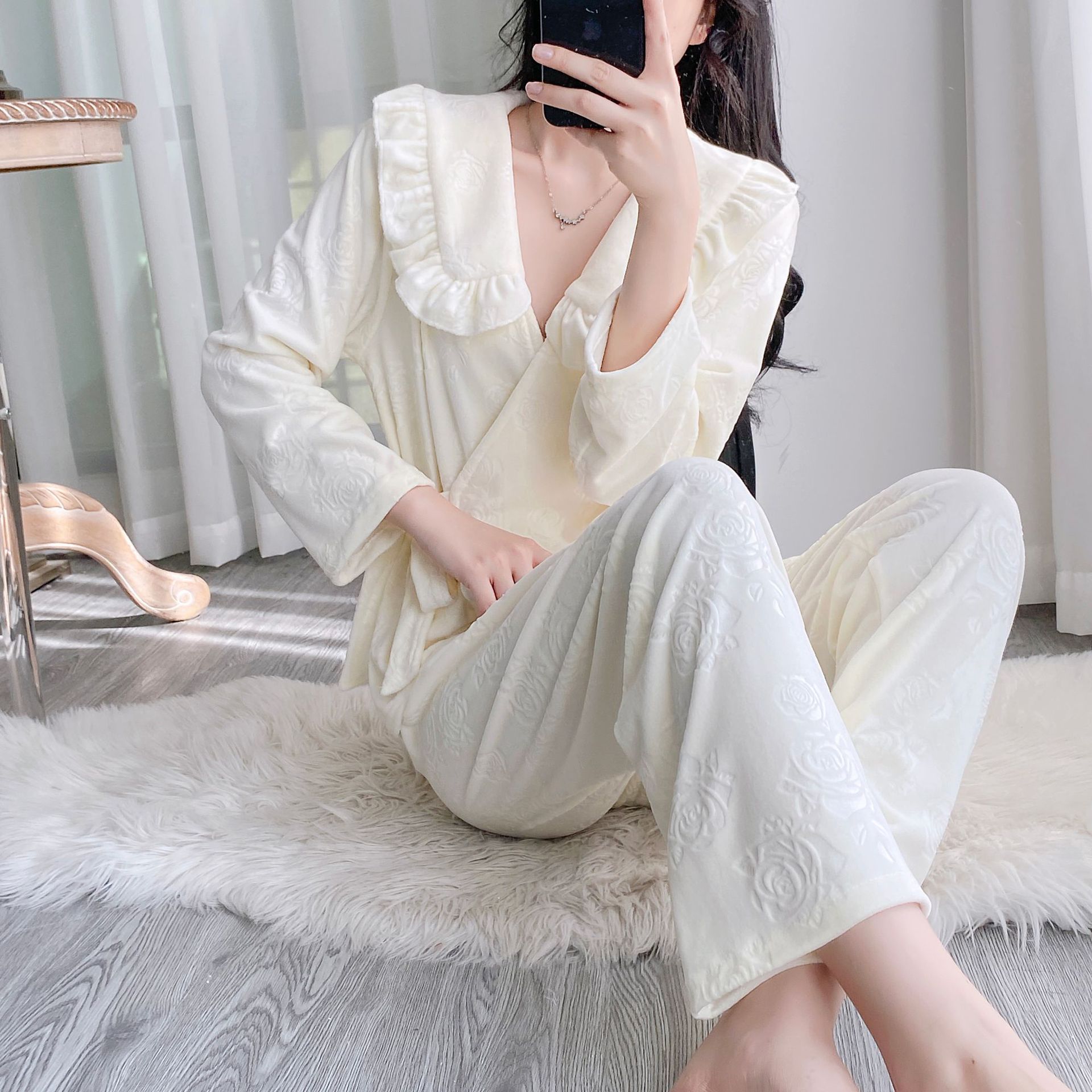 睡衣女高级感海岛绒简约保暖秋冬长袖长裤可外穿甜美公主风家居服