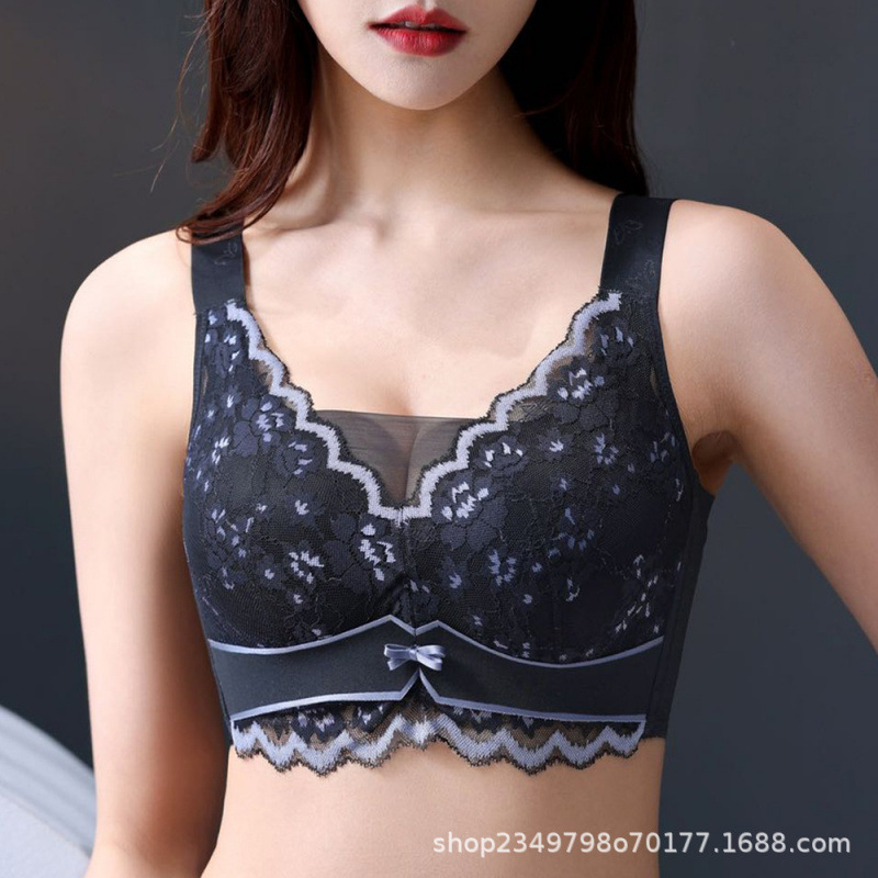 新款无钢圈纯欲风性感法式调整型美背大码内衣女提胸防下垂收副乳
