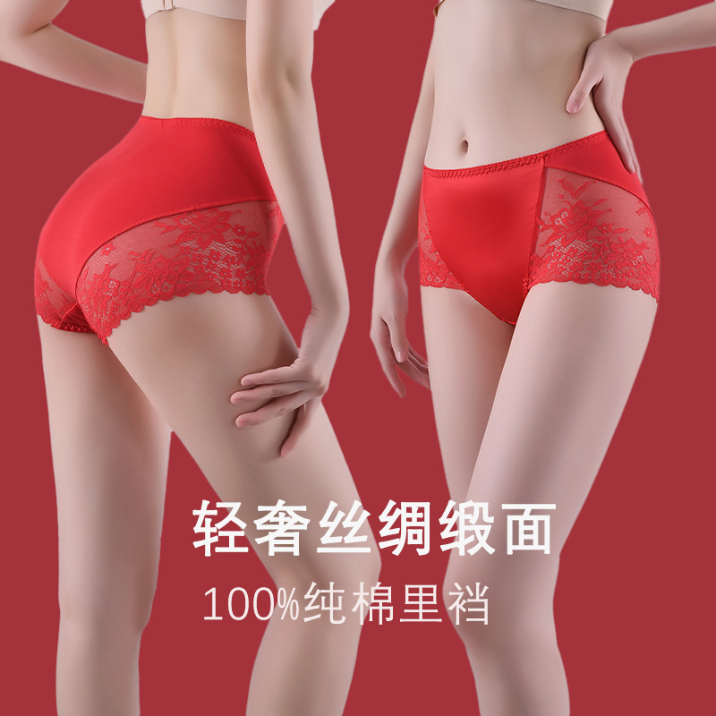 女士内裤性感蕾丝中腰莫代尔大码红色女现货批发纯棉三角裤纯棉裆