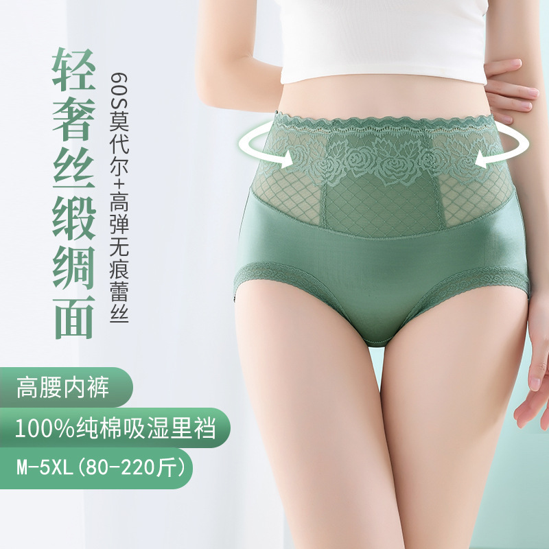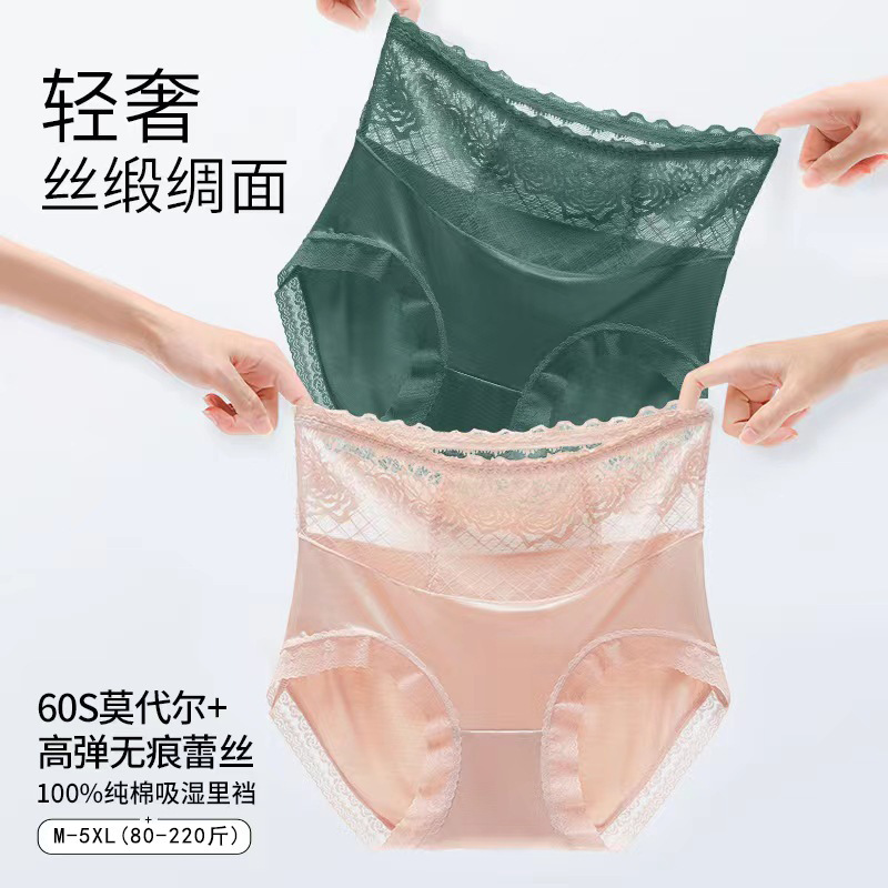 60S莫代尔全棉蕾丝内裤女轻薄高腰大码收腹无痕女士内裤批发纯棉