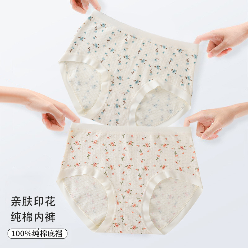 A类棉内裤女纯棉5A抗菌印花中腰大码无痕碎花亲肤透气女士三角