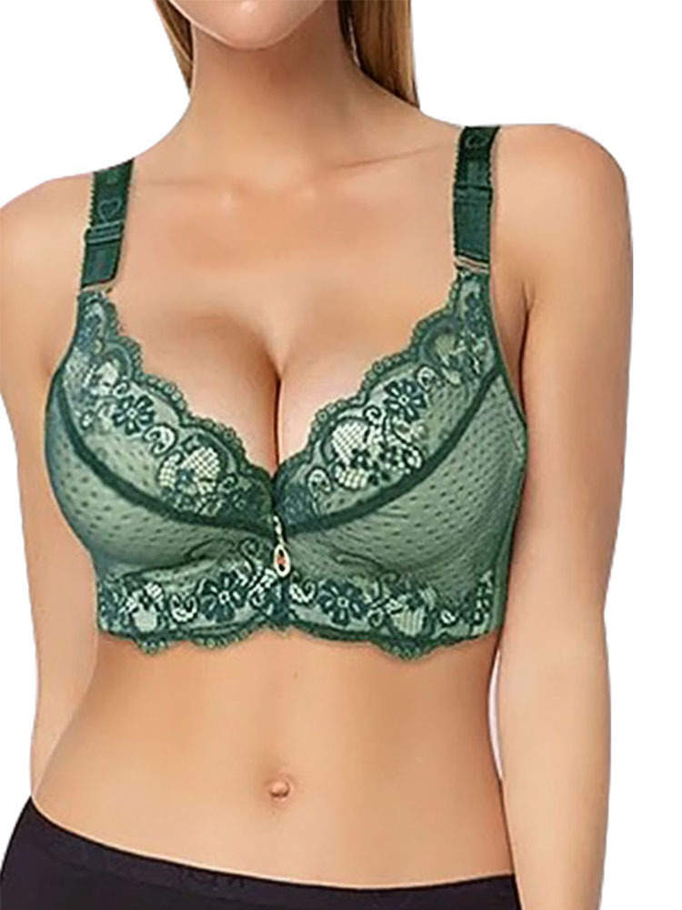 蕾丝大码小胸罩加厚款上托MM薄杯薄款聚拢文胸调整型性感内衣