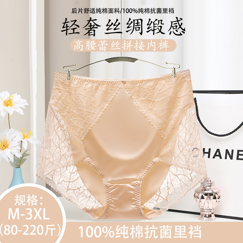 缎面纯棉蕾丝高腰内裤女大码内裤性感女里裆女士三角裤性感内裤