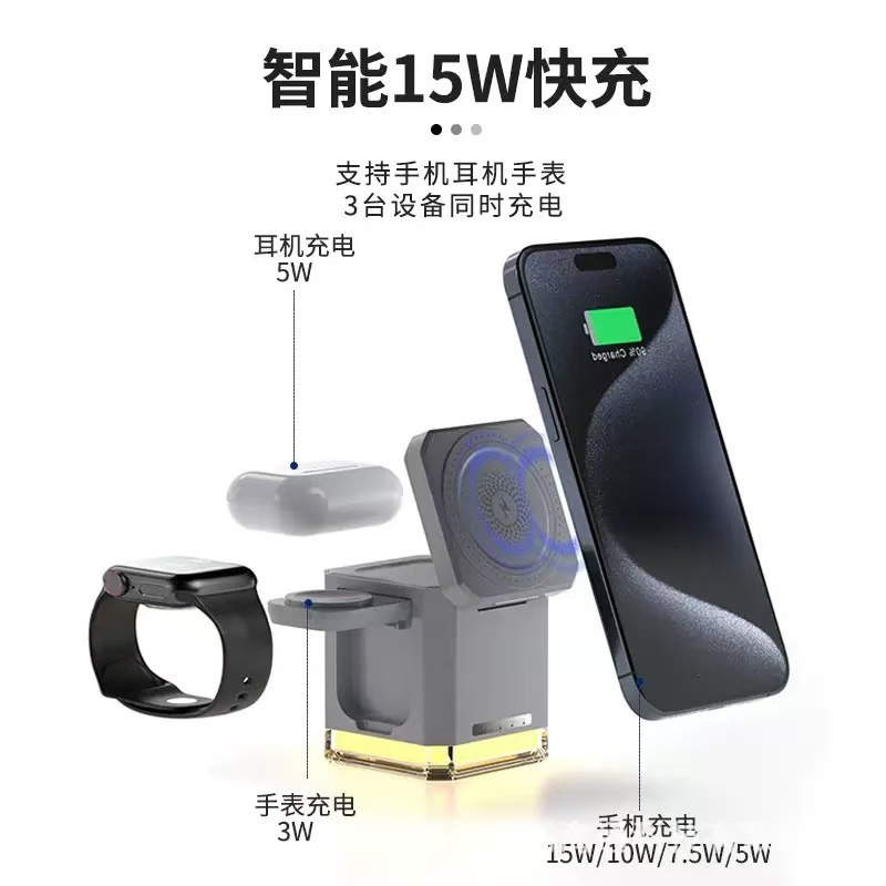 新款折叠磁吸三合一无线充同时兼容手表15W快充充电支架充电器