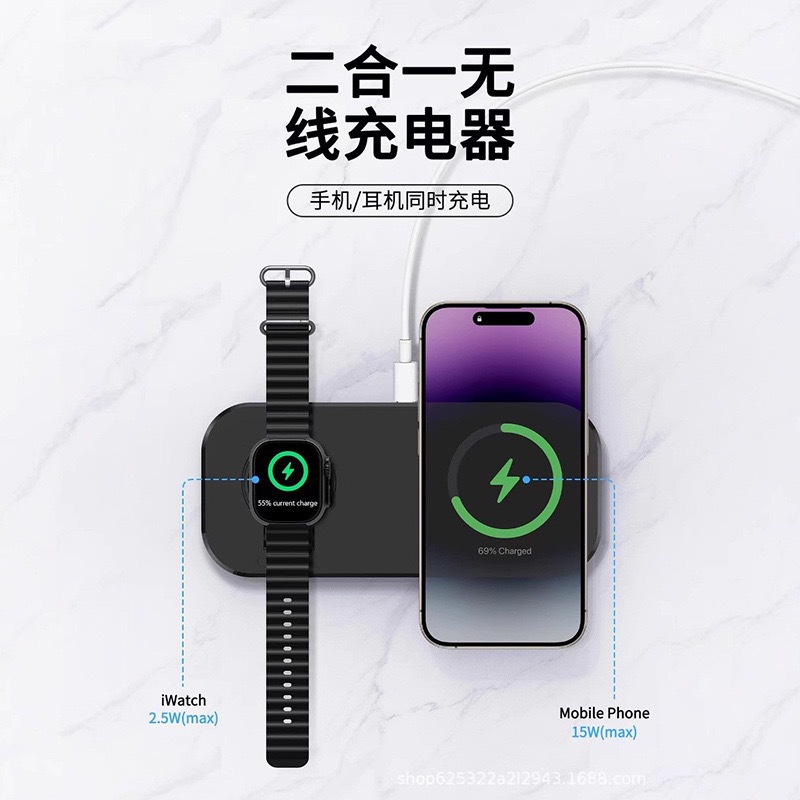 跨境新款桌面二合一无线充电器手机手表二合一同时充电双充