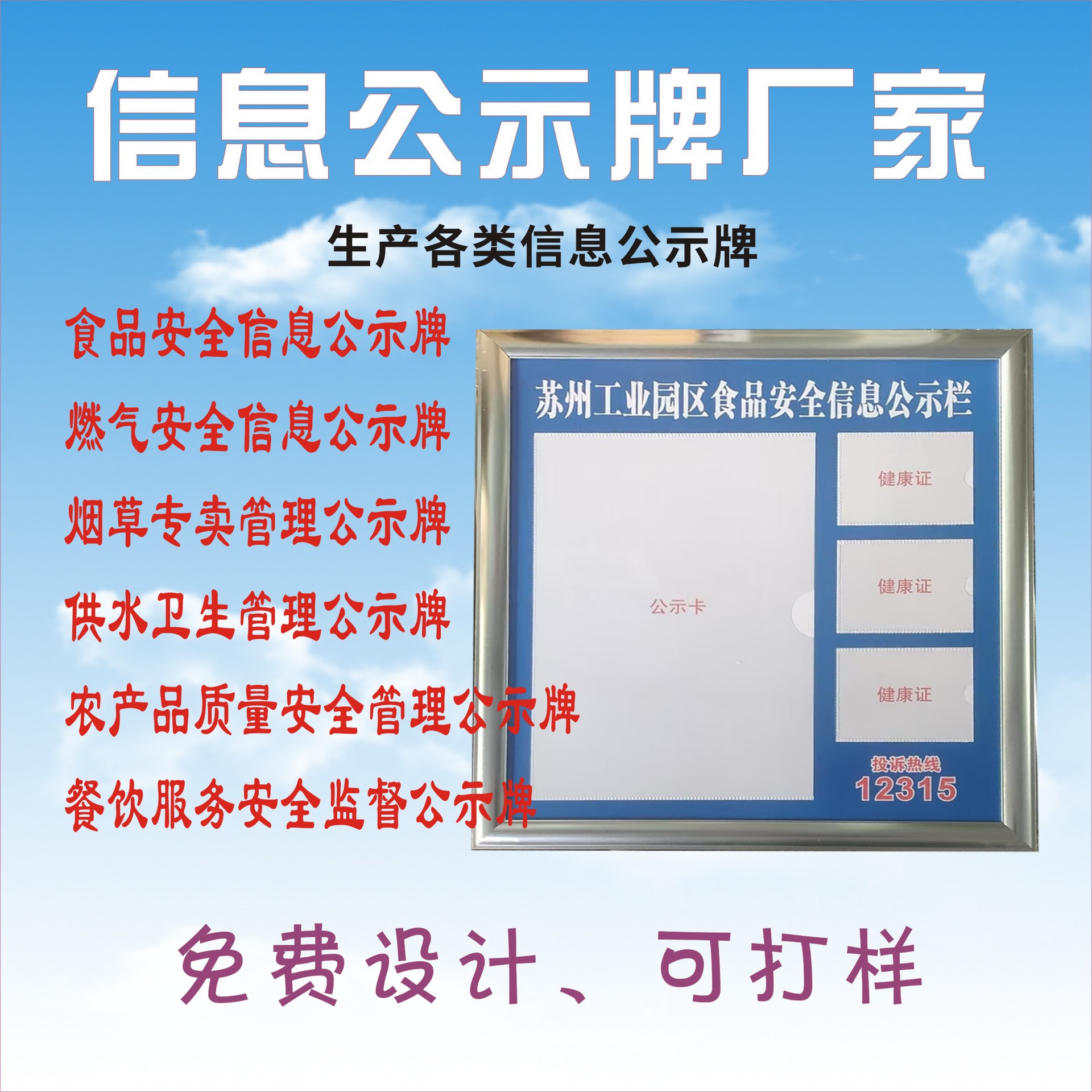亚克力KT板铝合金包边食品卫生安全管理公示牌烟草专卖管理公示牌