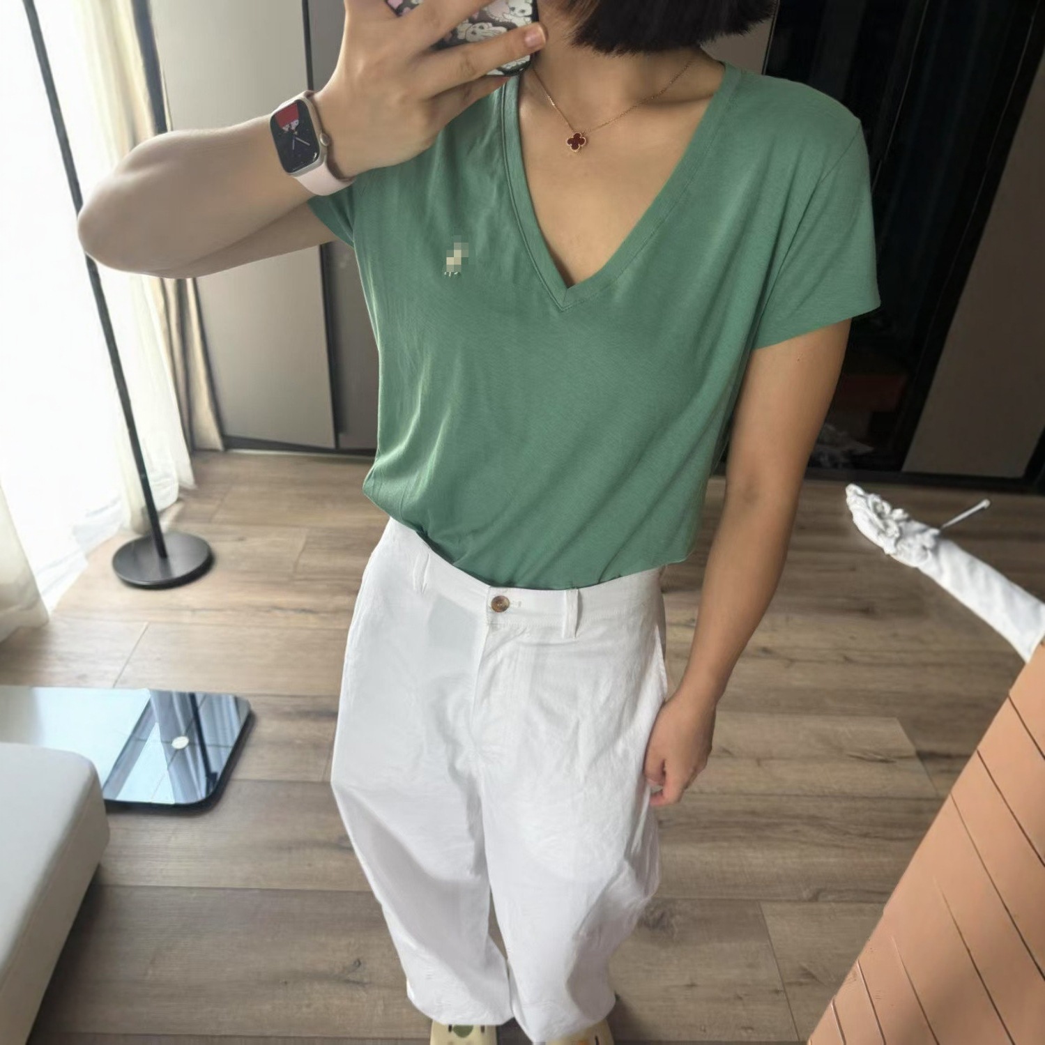 -               高版本RL原版外贸女款夏季轻奢百搭薄款纯棉刺绣小马标V领短袖T恤