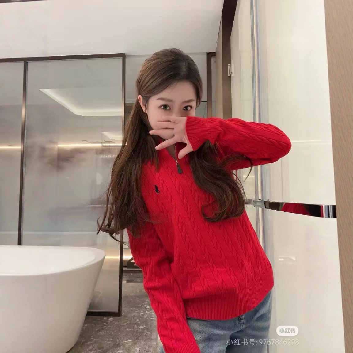 -               RL拉夫小马半拉链纯色刺绣logo麻花针织衫男女情侣经典款套头毛衣