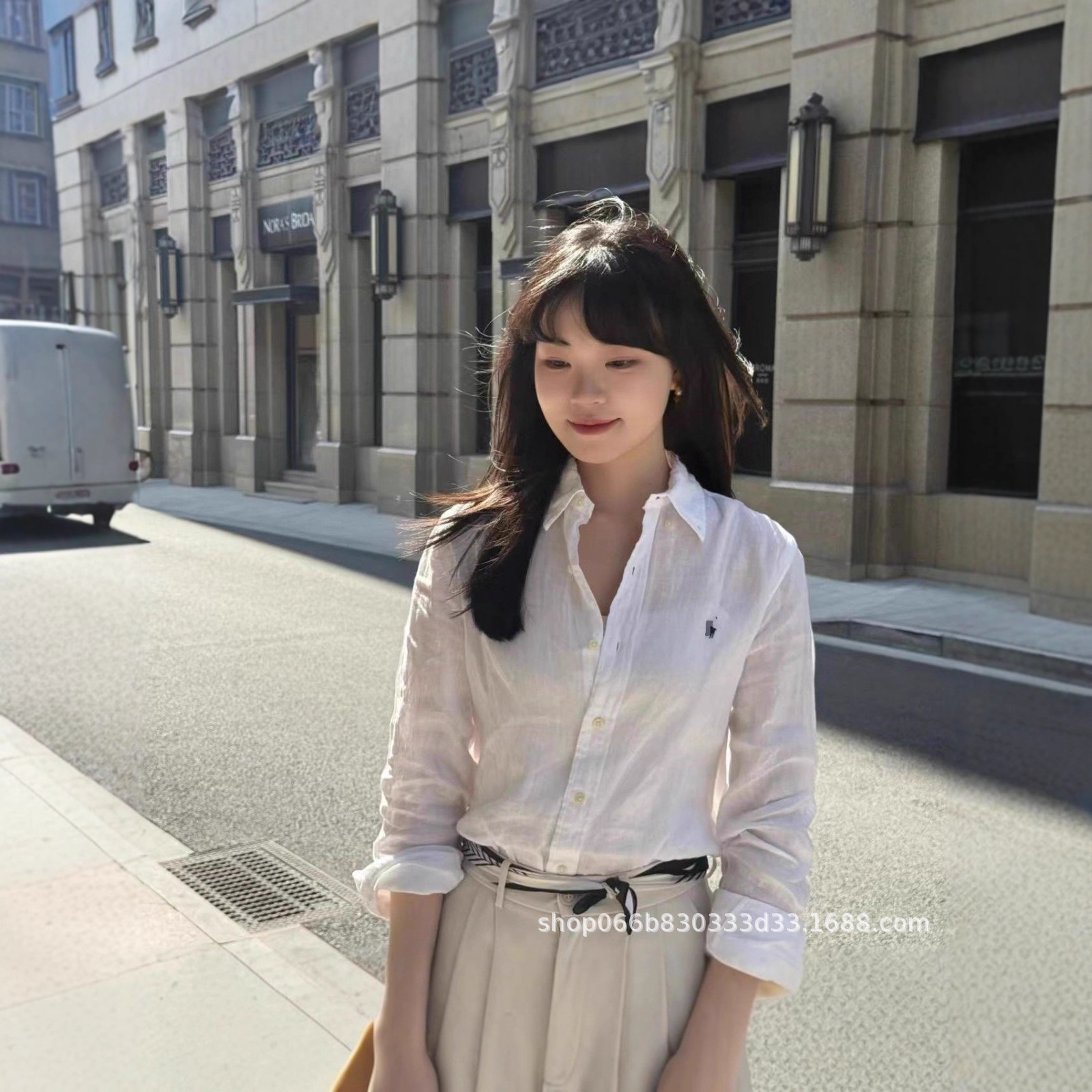 -               跨境高版本拉夫RL亚麻春夏透气防晒小马刺绣衬衫上衣棉麻慵懒衬衣